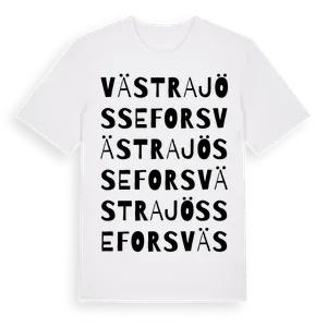 Västra Jössefors är en by i Värmlands län, Sverige. Våra t-shirts med motiv från Västra Jössefors är designade för dig som har en speciell koppling till platsen – oavsett om du bor här, har rötterna här eller bara älskar Västra Jössefors.