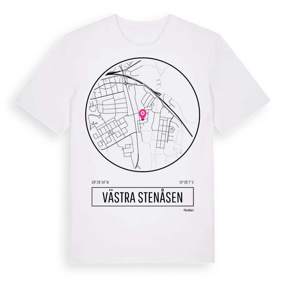 Västra Stenåsen t-shirt är inspirerad av stadsdelen Västra Stenåsen i Värmlands län, Sverige. Tröjan är designad för dig som har en speciell koppling till platsen – oavsett om du bor här, har rötterna här eller bara älskar Västra Stenåsen.
