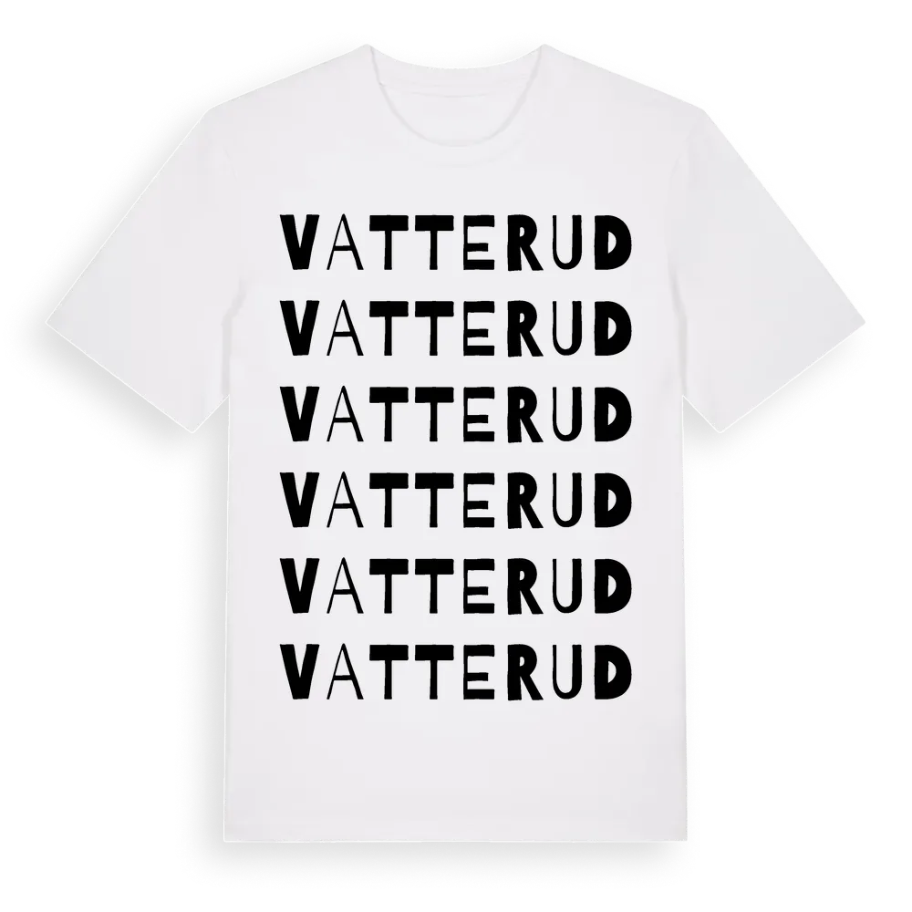 Vatterud ordlek t-shirt är inspirerad av Vatterud i Värmlands län, Sverige. Tröjan är designad för dig som har en speciell koppling till platsen – oavsett om du bor här, har rötterna här eller bara älskar Vatterud.