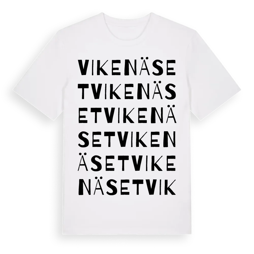 Vikenäset ordlek t-shirt är inspirerad av Vikenäset i Värmlands län, Sverige. Tröjan är designad för dig som har en speciell koppling till platsen – oavsett om du bor här, har rötterna här eller bara älskar Vikenäset.