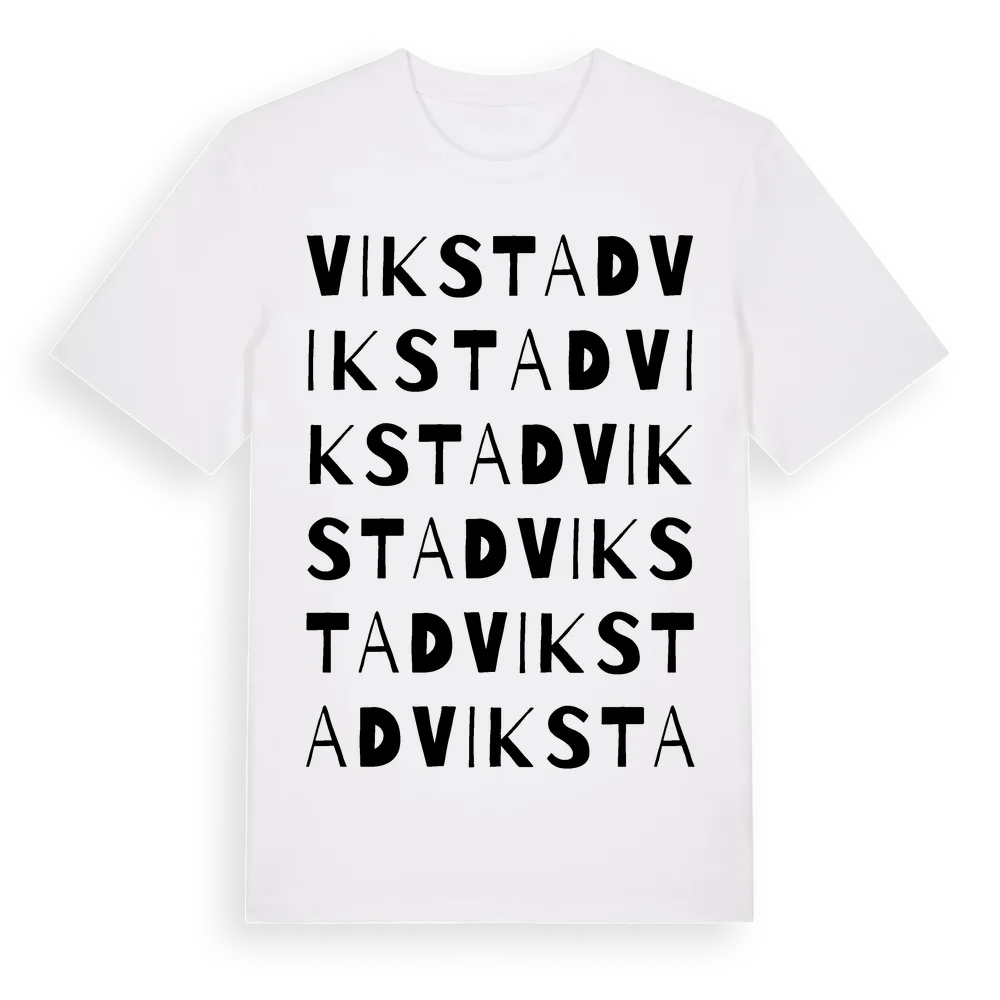 Vikstad ordlek t-shirt är inspirerad av Vikstad i Värmlands län, Sverige. Tröjan är designad för dig som har en speciell koppling till platsen – oavsett om du bor här, har rötterna här eller bara älskar Vikstad.