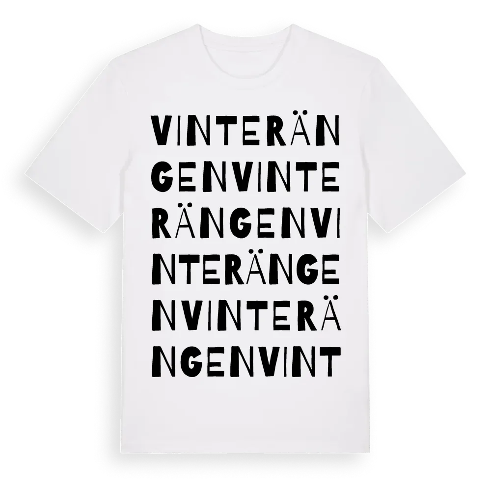 Vinterängen ordlek t-shirt är inspirerad av Vinterängen i Värmlands län, Sverige. Tröjan är designad för dig som har en speciell koppling till platsen – oavsett om du bor här, har rötterna här eller bara älskar Vinterängen.
