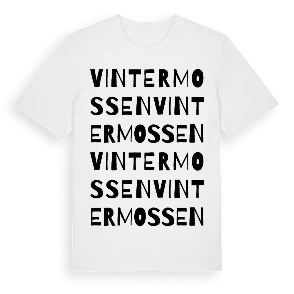 Vintermossen ordlek t-shirt är inspirerad av Vintermossen i Värmlands län, Sverige. Tröjan är designad för dig som har en speciell koppling till platsen – oavsett om du bor här, har rötterna här eller bara älskar Vintermossen.