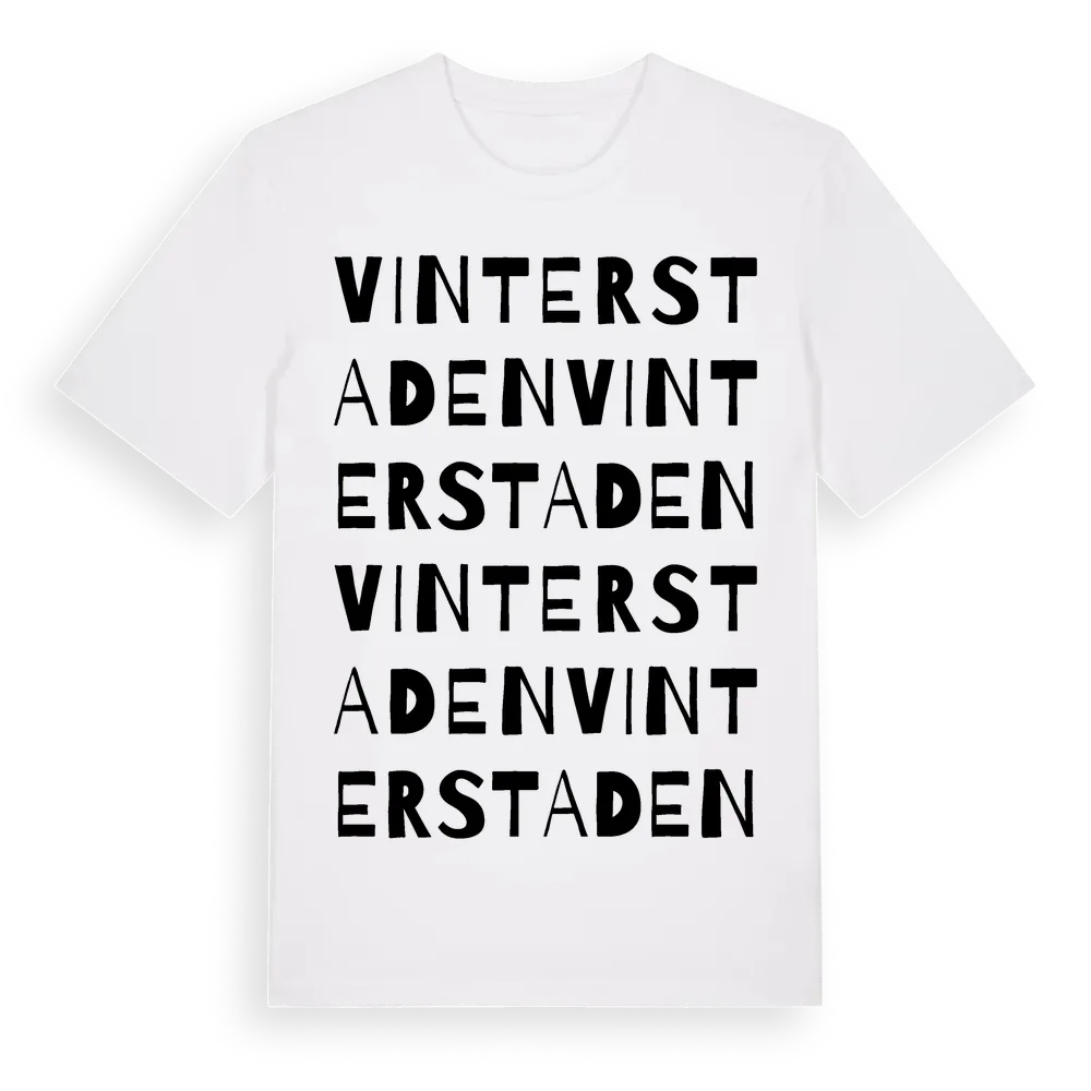Vinterstaden ordlek t-shirt är inspirerad av Vinterstaden i Värmlands län, Sverige. Tröjan är designad för dig som har en speciell koppling till platsen – oavsett om du bor här, har rötterna här eller bara älskar Vinterstaden.