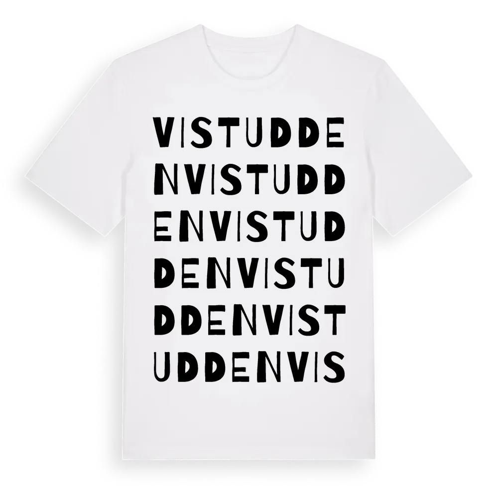 Vistudden ordlek t-shirt är inspirerad av Vistudden i Värmlands län, Sverige. Tröjan är designad för dig som har en speciell koppling till platsen – oavsett om du bor här, har rötterna här eller bara älskar Vistudden.