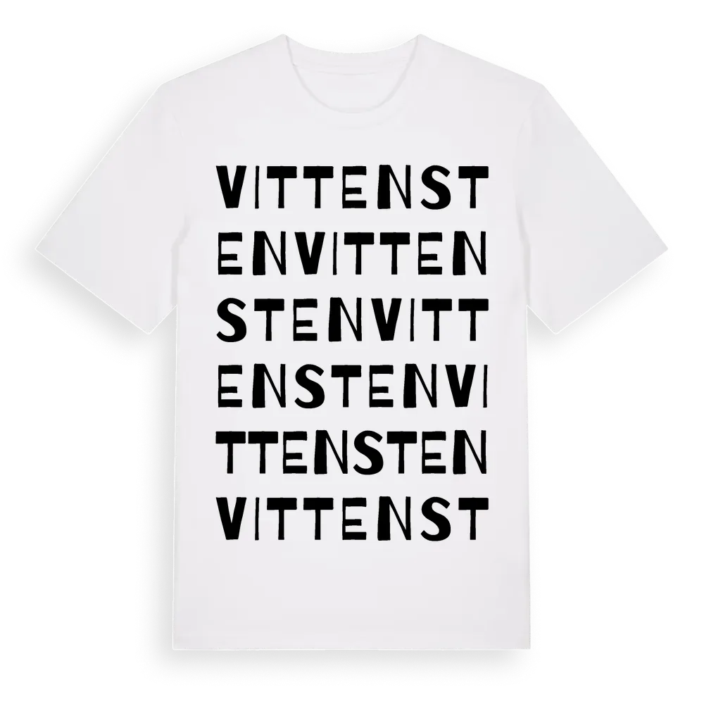 Vittensten ordlek t-shirt är inspirerad av byn Vittensten i Värmlands län, Sverige. Tröjan är designad för dig som har en speciell koppling till platsen – oavsett om du bor här, har rötterna här eller bara älskar Vittensten.