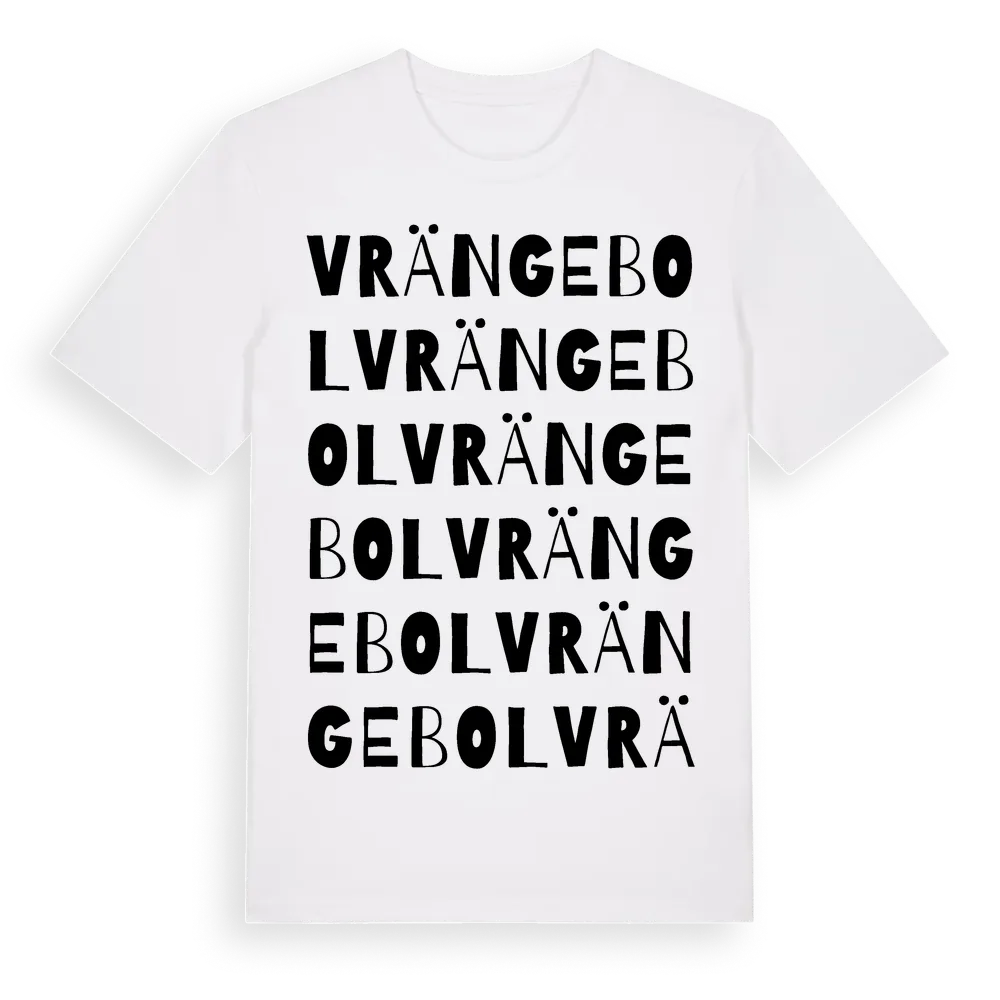Vrängebol ordlek t-shirt är inspirerad av Vrängebol i Värmlands län, Sverige. Tröjan är designad för dig som har en speciell koppling till platsen – oavsett om du bor här, har rötterna här eller bara älskar Vrängebol.