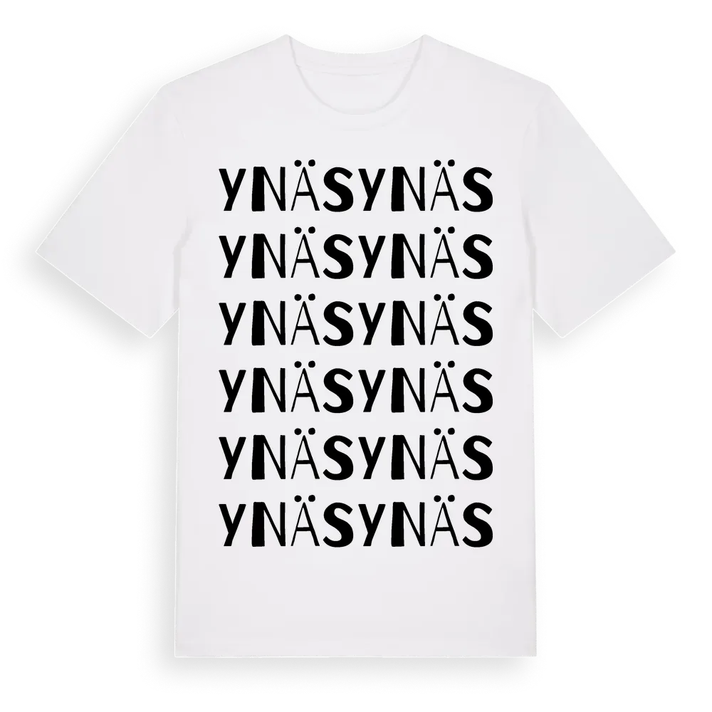 En ordlek byggd på Ynäss namn. Subtilt och klurig – ett motiv som bara de som verkligen känner platsen fullt ut förstår. Premium bomull, unisex – från byn Ynäs i Värmlands län.