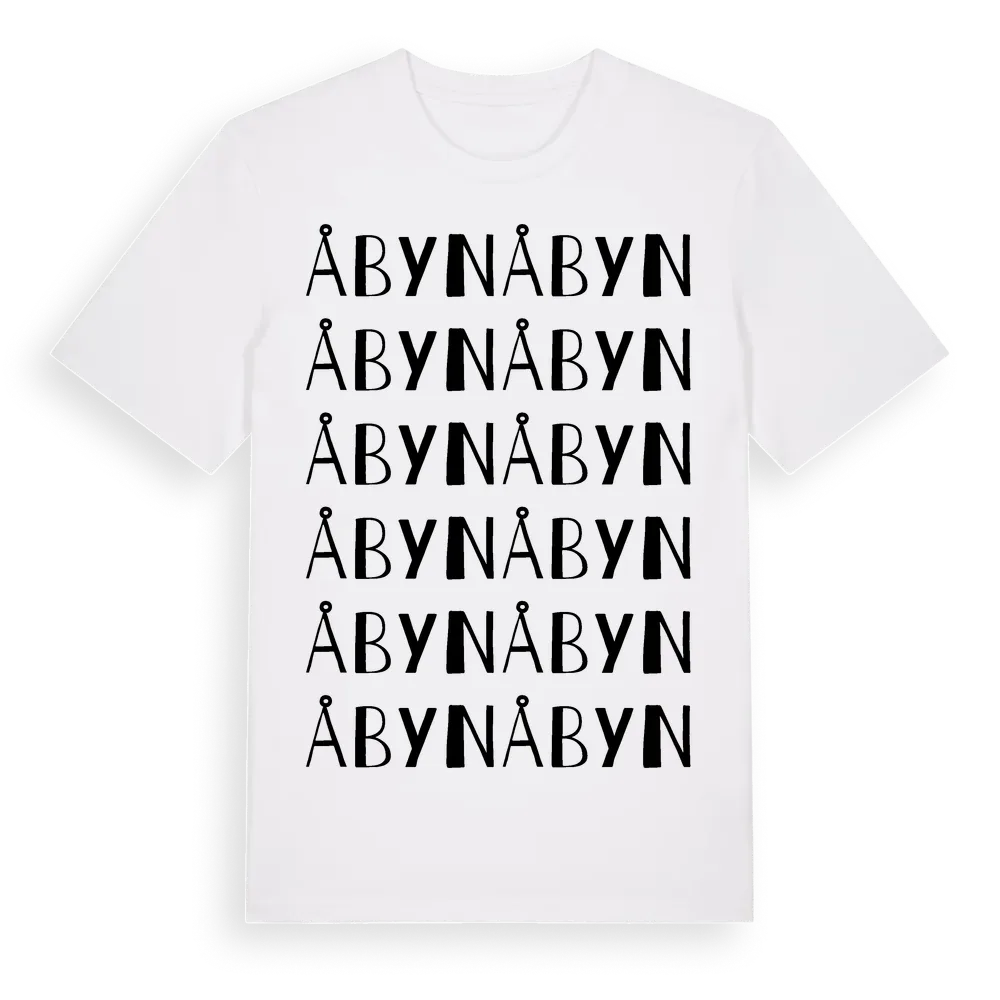 Åbyn ordlek t-shirt är inspirerad av byn Åbyn i Västerbottens län, Sverige. Tröjan är designad för dig som har en speciell koppling till platsen – oavsett om du bor här, har rötterna här eller bara älskar Åbyn.