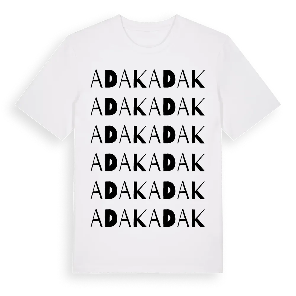 Adak ordlek t-shirt är inspirerad av byn Adak i Västerbottens län, Sverige. Tröjan är designad för dig som har en speciell koppling till platsen – oavsett om du bor här, har rötterna här eller bara älskar Adak.
