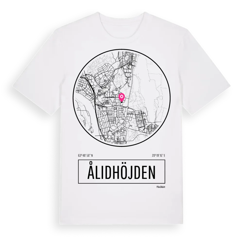 Ett rent, runt tryck med Ålidhöjdens namn. Minimalistiskt och stilrent – perfekt för den som känner platsen utan att skrika det. Premium bomull, unisex – från stadsdelen Ålidhöjden i Västerbottens län.