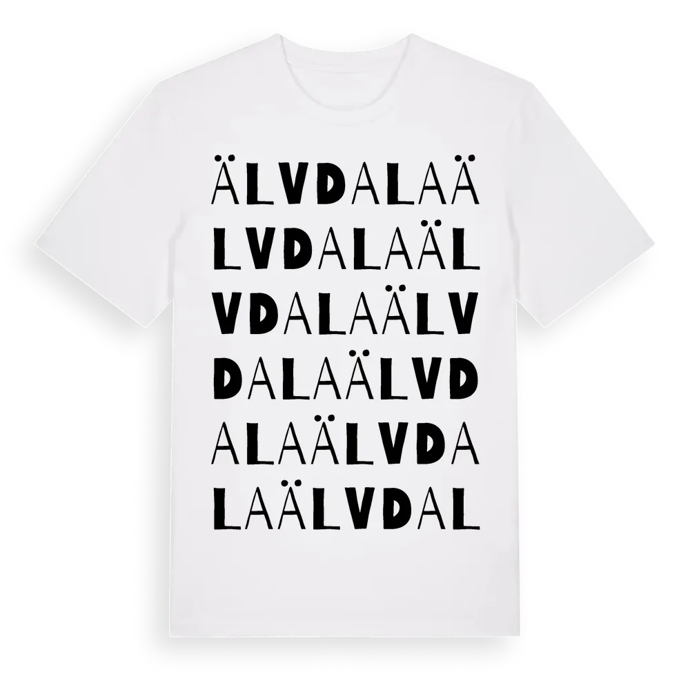 Älvdala ordlek t-shirt är inspirerad av stadsdelen Älvdala i Västerbottens län, Sverige. Tröjan är designad för dig som har en speciell koppling till platsen – oavsett om du bor här, har rötterna här eller bara älskar Älvdala.