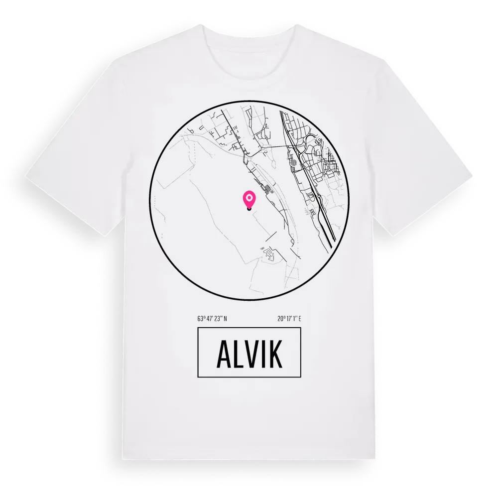 Alvik t-shirt är inspirerad av Alvik i Västerbottens län, Sverige. Tröjan är designad för dig som har en speciell koppling till platsen – oavsett om du bor här, har rötterna här eller bara älskar Alvik.