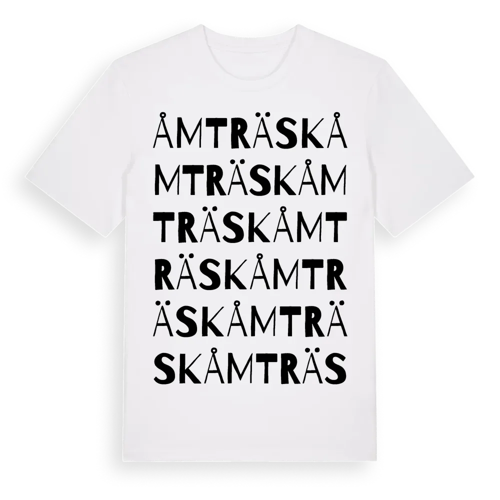 Åmträsk ordlek t-shirt är inspirerad av byn Åmträsk i Västerbottens län, Sverige. Tröjan är designad för dig som har en speciell koppling till platsen – oavsett om du bor här, har rötterna här eller bara älskar Åmträsk.