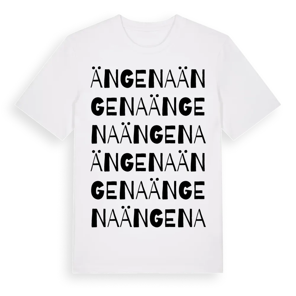 Ängena ordlek t-shirt är inspirerad av byn Ängena i Västerbottens län, Sverige. Tröjan är designad för dig som har en speciell koppling till platsen – oavsett om du bor här, har rötterna här eller bara älskar Ängena.