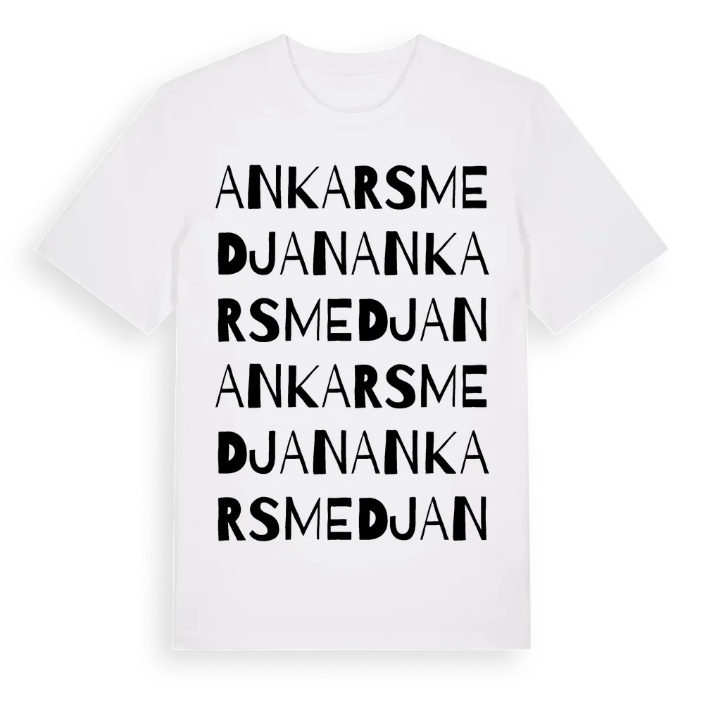 Ankarsmedjan ordlek t-shirt är inspirerad av Ankarsmedjan i Västerbottens län, Sverige. Tröjan är designad för dig som har en speciell koppling till platsen – oavsett om du bor här, har rötterna här eller bara älskar Ankarsmedjan.