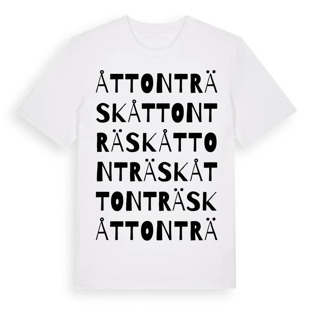 Åttonträsk ordlek t-shirt är inspirerad av byn Åttonträsk i Västerbottens län, Sverige. Tröjan är designad för dig som har en speciell koppling till platsen – oavsett om du bor här, har rötterna här eller bara älskar Åttonträsk.