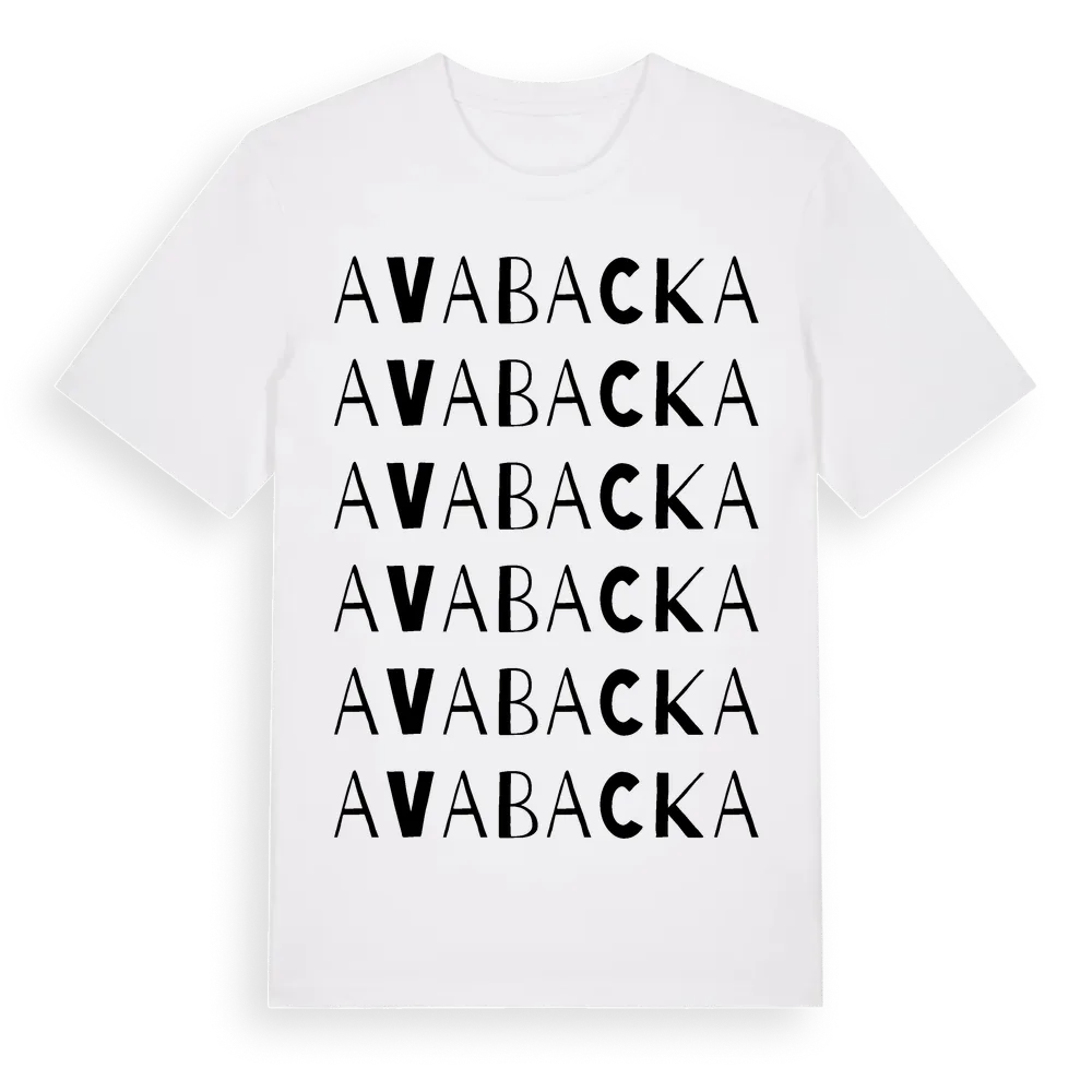Avabacka ordlek t-shirt är inspirerad av Avabacka i Västerbottens län, Sverige. Tröjan är designad för dig som har en speciell koppling till platsen – oavsett om du bor här, har rötterna här eller bara älskar Avabacka.