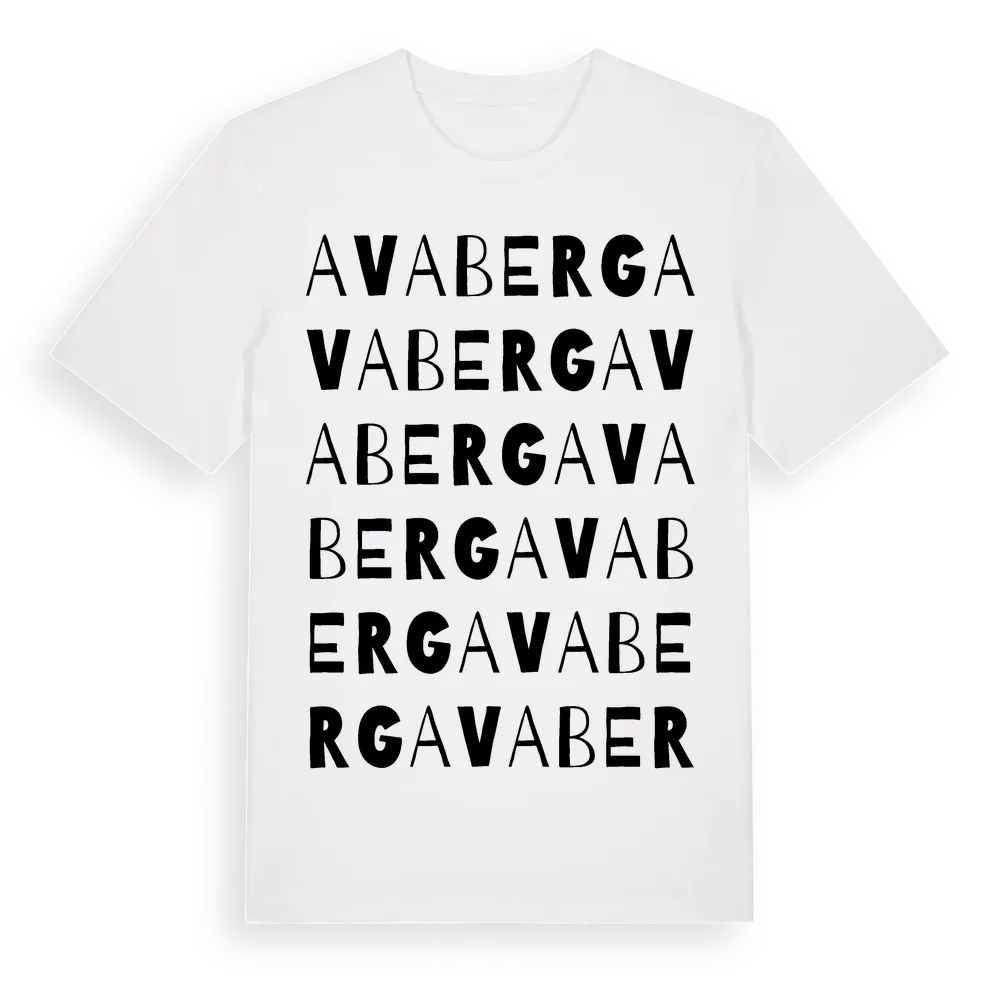 Avaberg ordlek t-shirt är inspirerad av byn Avaberg i Västerbottens län, Sverige. Tröjan är designad för dig som har en speciell koppling till platsen – oavsett om du bor här, har rötterna här eller bara älskar Avaberg.