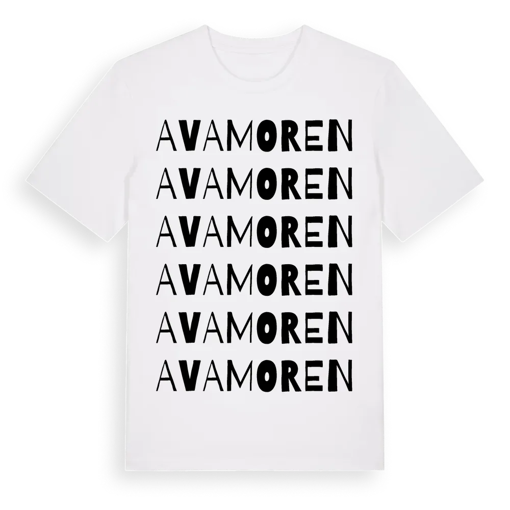 En ordlek byggd på Avamorens namn. Subtilt och klurig – ett motiv som bara de som verkligen känner platsen fullt ut förstår. Premium bomull, unisex – från Avamoren i Västerbottens län.