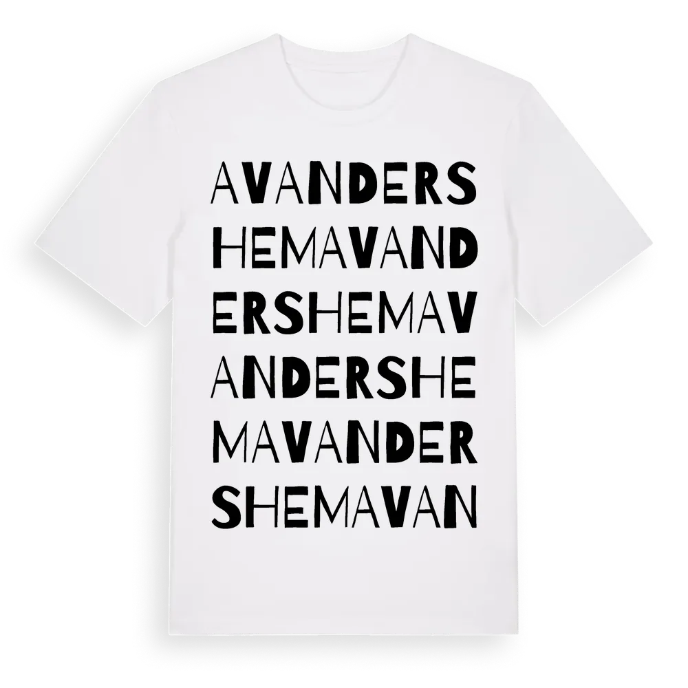 Avandershem ordlek t-shirt är inspirerad av Avandershem i Västerbottens län, Sverige. Tröjan är designad för dig som har en speciell koppling till platsen – oavsett om du bor här, har rötterna här eller bara älskar Avandershem.