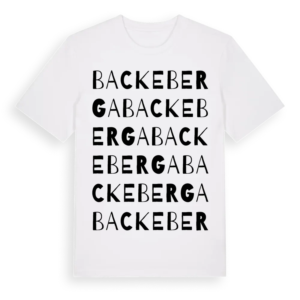 Backeberga ordlek t-shirt är inspirerad av Backeberga i Västerbottens län, Sverige. Tröjan är designad för dig som har en speciell koppling till platsen – oavsett om du bor här, har rötterna här eller bara älskar Backeberga.