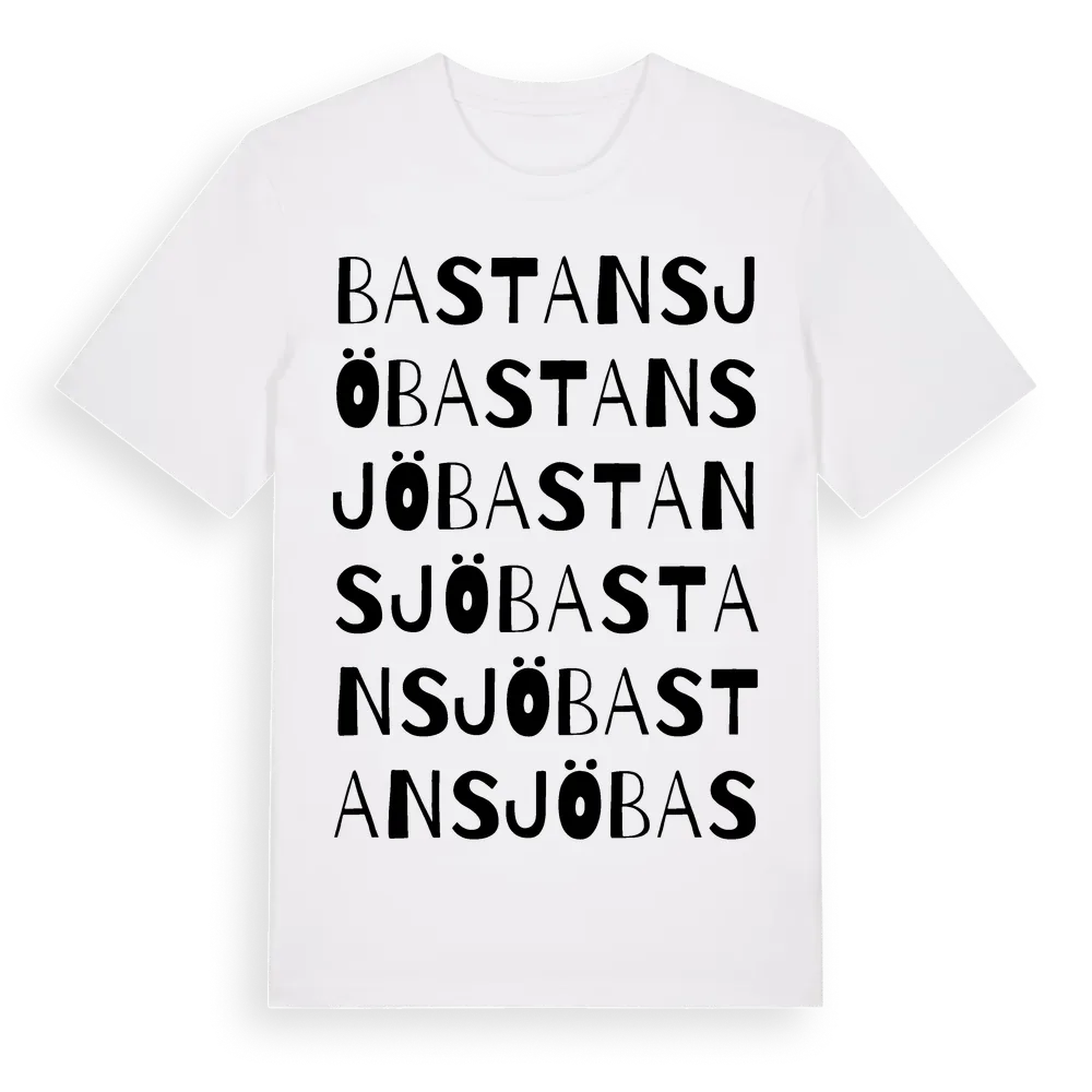 Bastansjö ordlek t-shirt är inspirerad av byn Bastansjö i Västerbottens län, Sverige. Tröjan är designad för dig som har en speciell koppling till platsen – oavsett om du bor här, har rötterna här eller bara älskar Bastansjö.