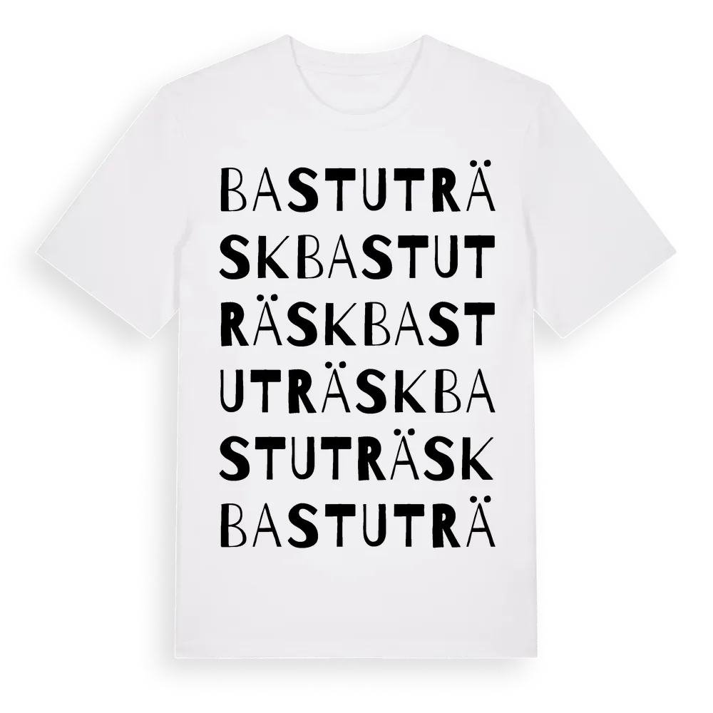 Bastuträsk ordlek t-shirt är inspirerad av byn Bastuträsk i Västerbottens län, Sverige. Tröjan är designad för dig som har en speciell koppling till platsen – oavsett om du bor här, har rötterna här eller bara älskar Bastuträsk.