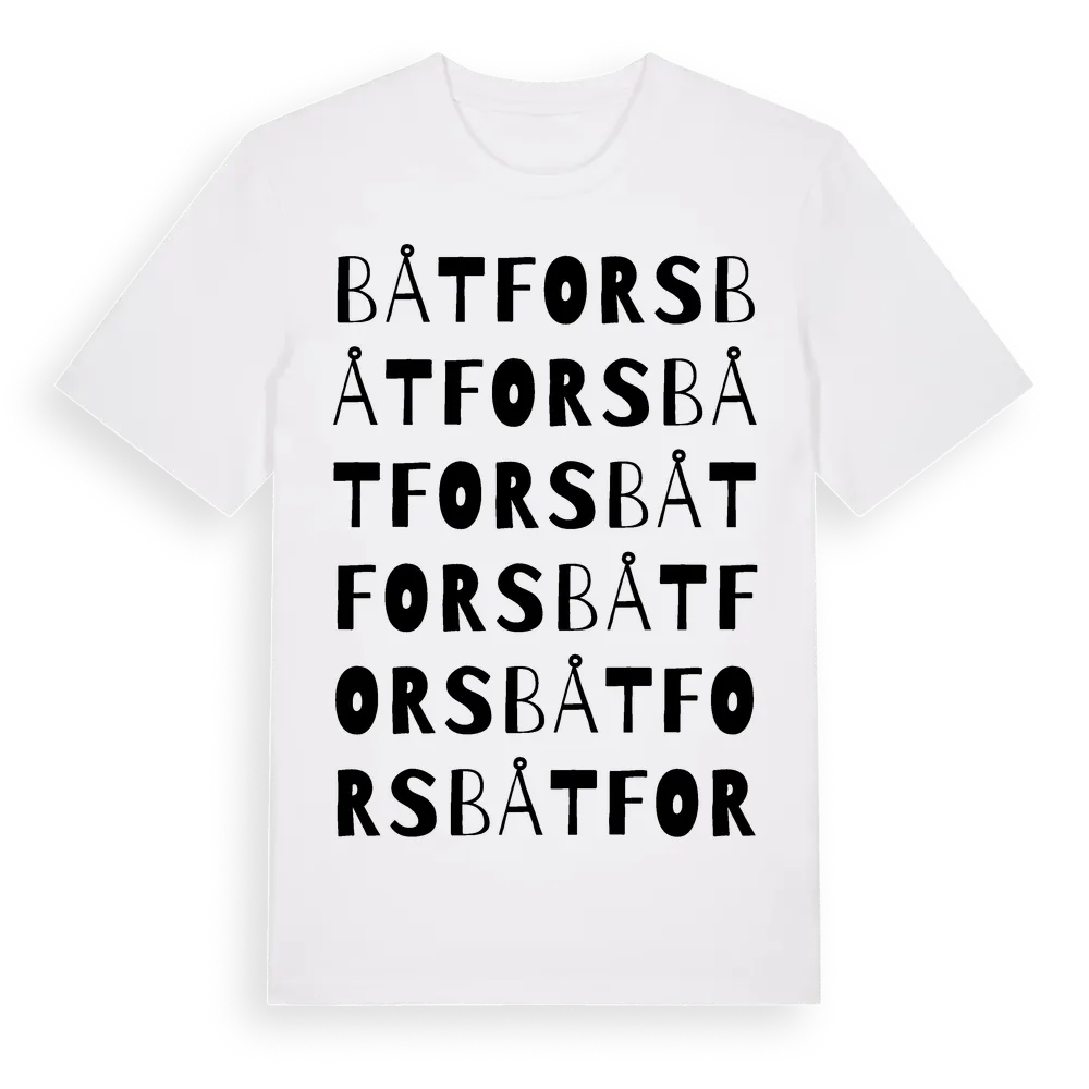 Båtfors ordlek t-shirt är inspirerad av byn Båtfors i Västerbottens län, Sverige. Tröjan är designad för dig som har en speciell koppling till platsen – oavsett om du bor här, har rötterna här eller bara älskar Båtfors.