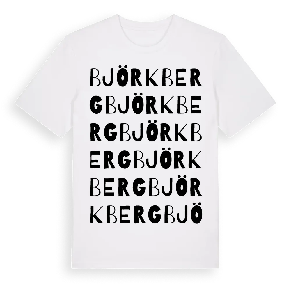Björkberg ordlek t-shirt är inspirerad av byn Björkberg i Västerbottens län, Sverige. Tröjan är designad för dig som har en speciell koppling till platsen – oavsett om du bor här, har rötterna här eller bara älskar Björkberg.