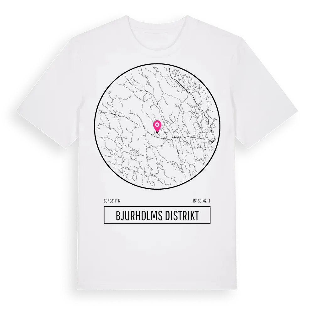Bjurholms Distrikt t-shirt är inspirerad av Bjurholms Distrikt i Västerbottens län, Sverige. Tröjan är designad för dig som har en speciell koppling till platsen – oavsett om du bor här, har rötterna här eller bara älskar Bjurholms Distrikt.