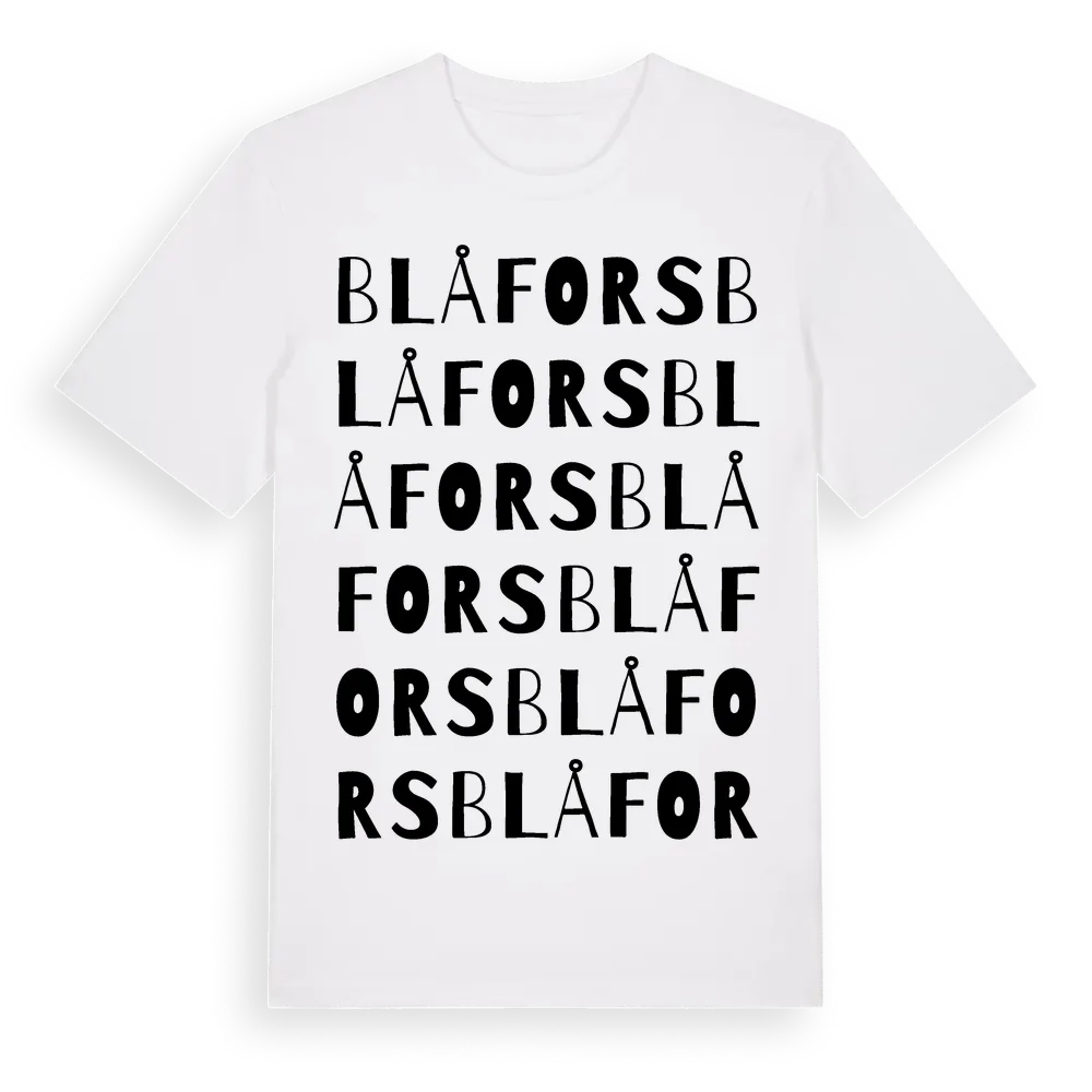 Blåfors ordlek t-shirt är inspirerad av byn Blåfors i Västerbottens län, Sverige. Tröjan är designad för dig som har en speciell koppling till platsen – oavsett om du bor här, har rötterna här eller bara älskar Blåfors.