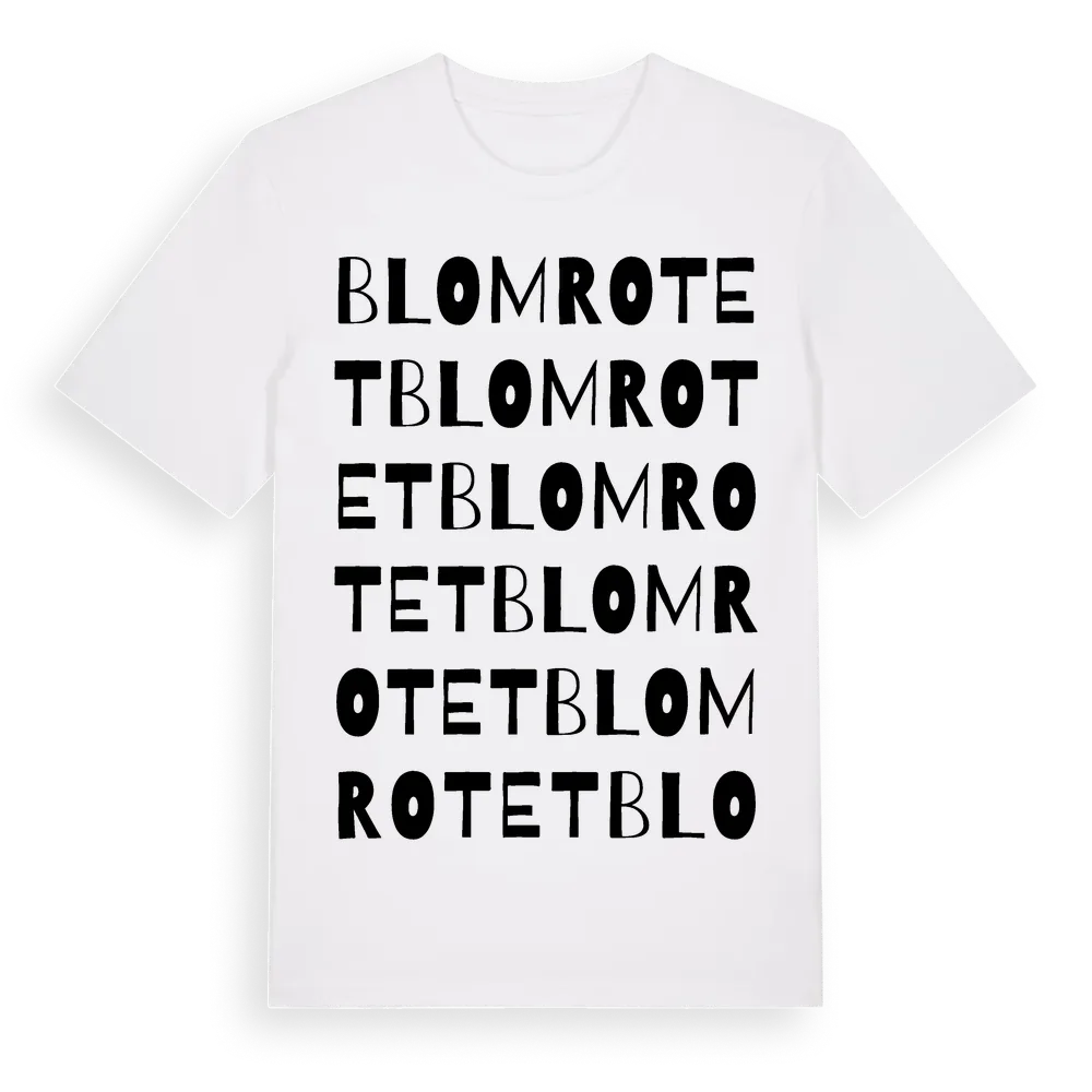 Blomrotet ordlek t-shirt är inspirerad av Blomrotet i Västerbottens län, Sverige. Tröjan är designad för dig som har en speciell koppling till platsen – oavsett om du bor här, har rötterna här eller bara älskar Blomrotet.