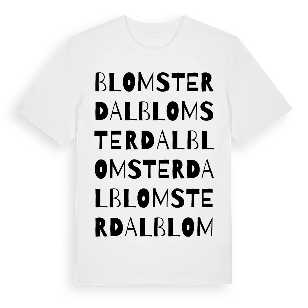 Blomsterdal ordlek t-shirt är inspirerad av Blomsterdal i Västerbottens län, Sverige. Tröjan är designad för dig som har en speciell koppling till platsen – oavsett om du bor här, har rötterna här eller bara älskar Blomsterdal.