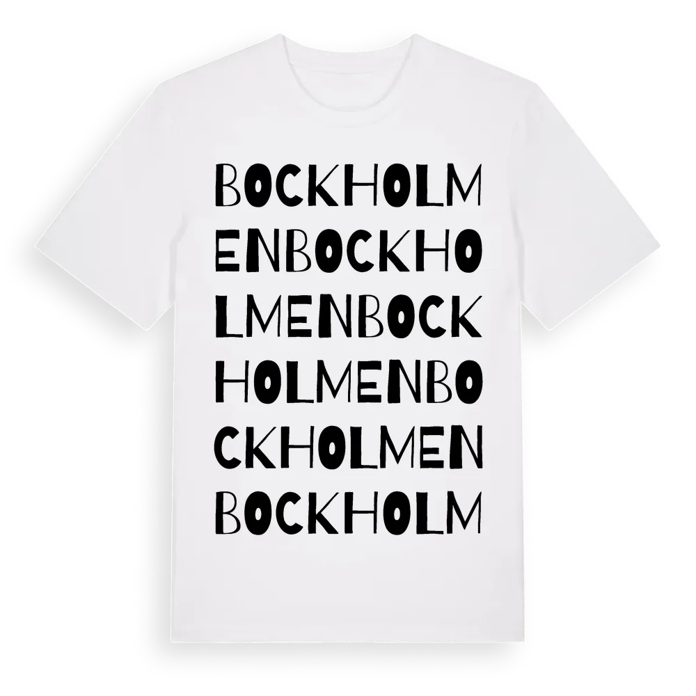 Bockholmen ordlek t-shirt är inspirerad av Bockholmen i Västerbottens län, Sverige. Tröjan är designad för dig som har en speciell koppling till platsen – oavsett om du bor här, har rötterna här eller bara älskar Bockholmen.