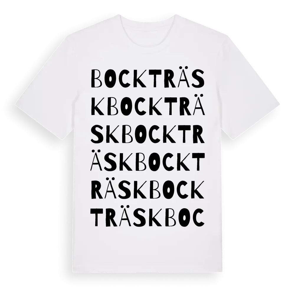 Bockträsk ordlek t-shirt är inspirerad av byn Bockträsk i Västerbottens län, Sverige. Tröjan är designad för dig som har en speciell koppling till platsen – oavsett om du bor här, har rötterna här eller bara älskar Bockträsk.