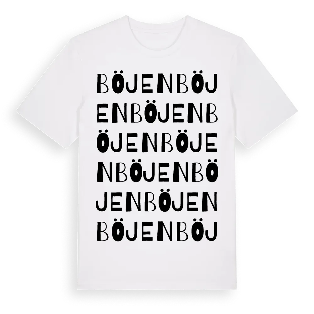 Böjen ordlek t-shirt är inspirerad av Böjen i Västerbottens län, Sverige. Tröjan är designad för dig som har en speciell koppling till platsen – oavsett om du bor här, har rötterna här eller bara älskar Böjen.