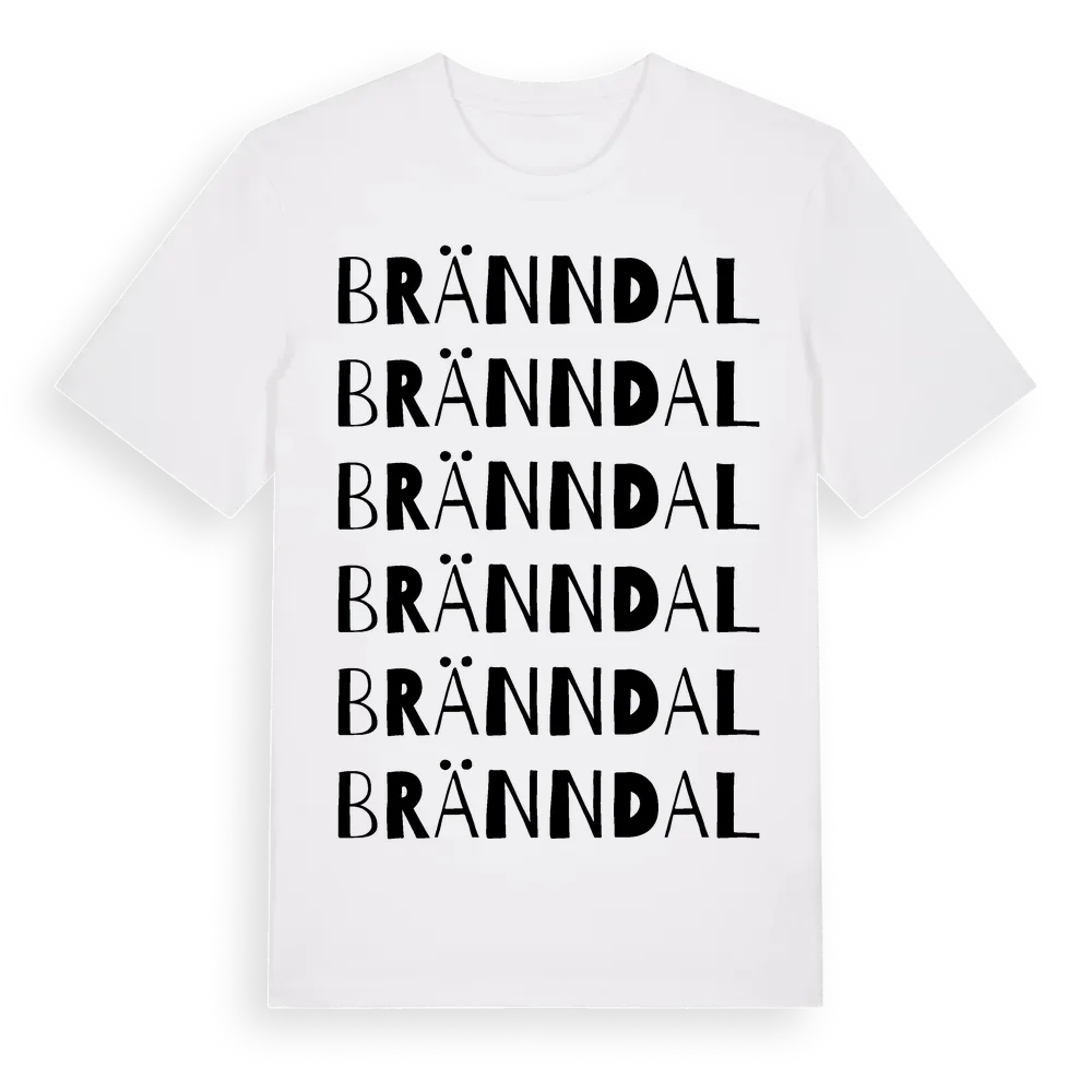 Bränndal ordlek t-shirt är inspirerad av Bränndal i Västerbottens län, Sverige. Tröjan är designad för dig som har en speciell koppling till platsen – oavsett om du bor här, har rötterna här eller bara älskar Bränndal.