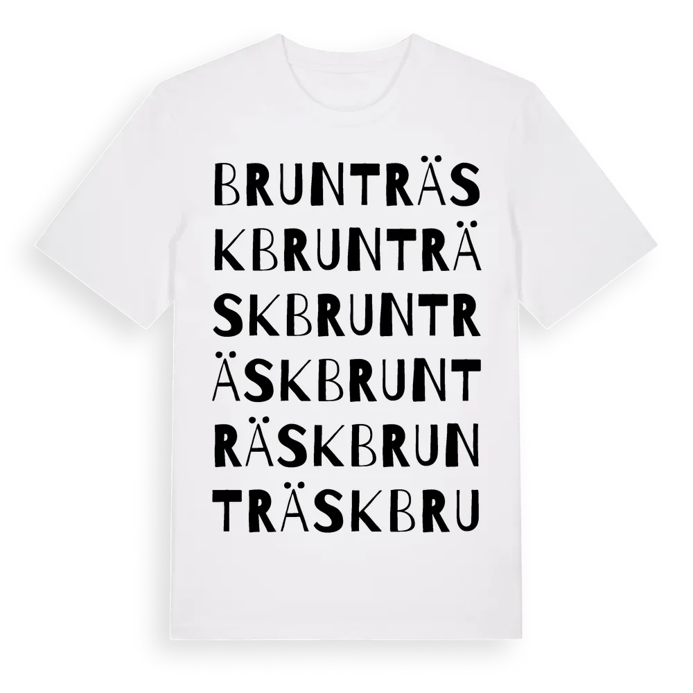 Brunträsk ordlek t-shirt är inspirerad av byn Brunträsk i Västerbottens län, Sverige. Tröjan är designad för dig som har en speciell koppling till platsen – oavsett om du bor här, har rötterna här eller bara älskar Brunträsk.