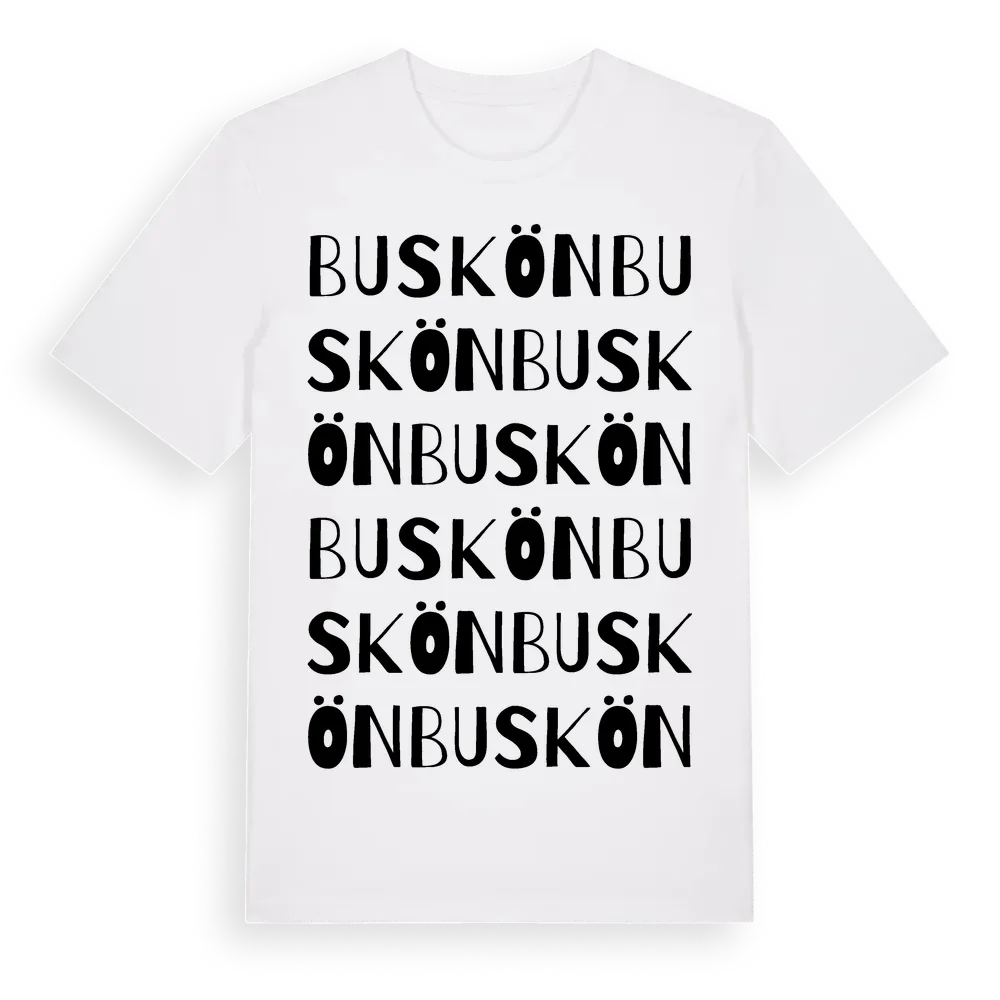 Buskön ordlek t-shirt är inspirerad av ön Buskön i Västerbottens län, Sverige. Tröjan är designad för dig som har en speciell koppling till platsen – oavsett om du bor här, har rötterna här eller bara älskar Buskön.