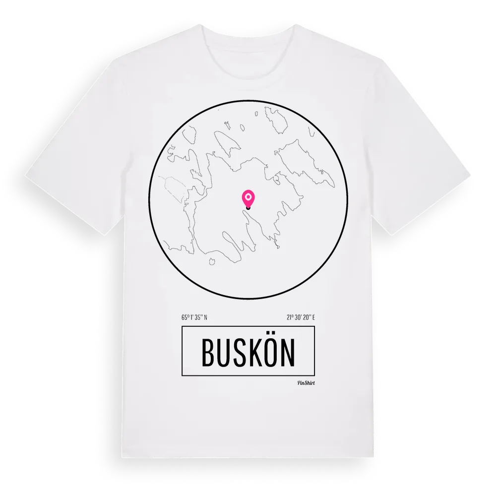 Ett rent, runt tryck med Busköns namn. Minimalistiskt och stilrent – perfekt för den som känner platsen utan att skrika det. Premium bomull, unisex – från ön Buskön i Västerbottens län.