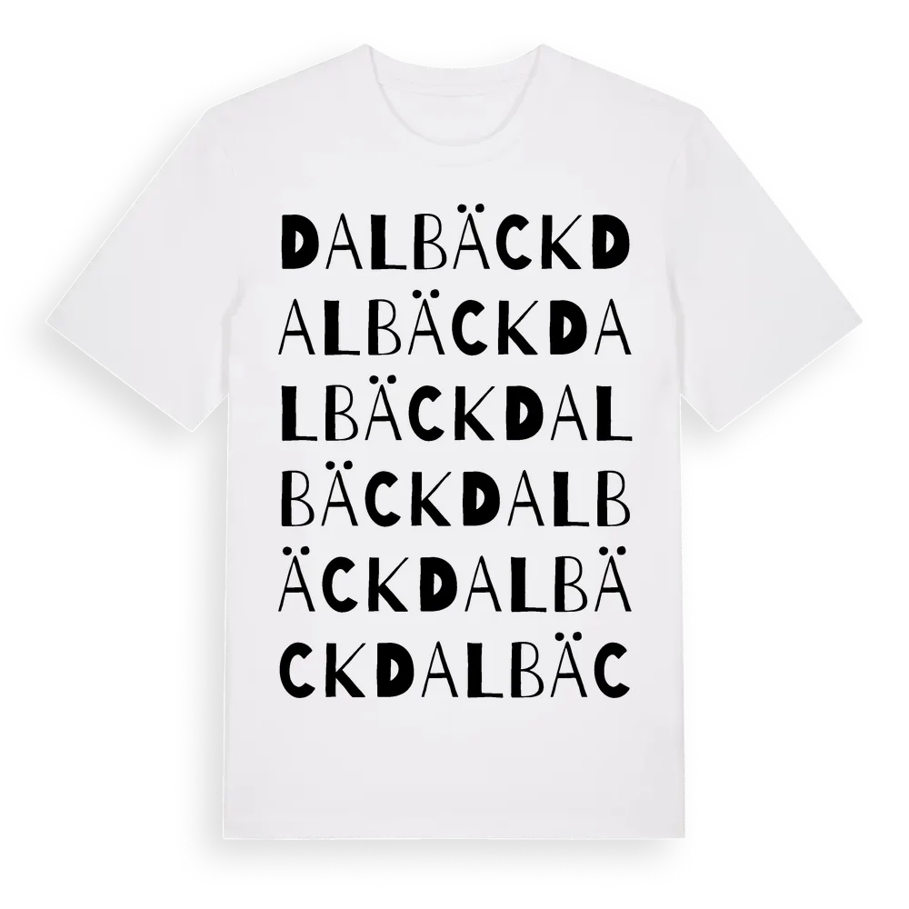Dalbäck ordlek t-shirt är inspirerad av byn Dalbäck i Västerbottens län, Sverige. Tröjan är designad för dig som har en speciell koppling till platsen – oavsett om du bor här, har rötterna här eller bara älskar Dalbäck.