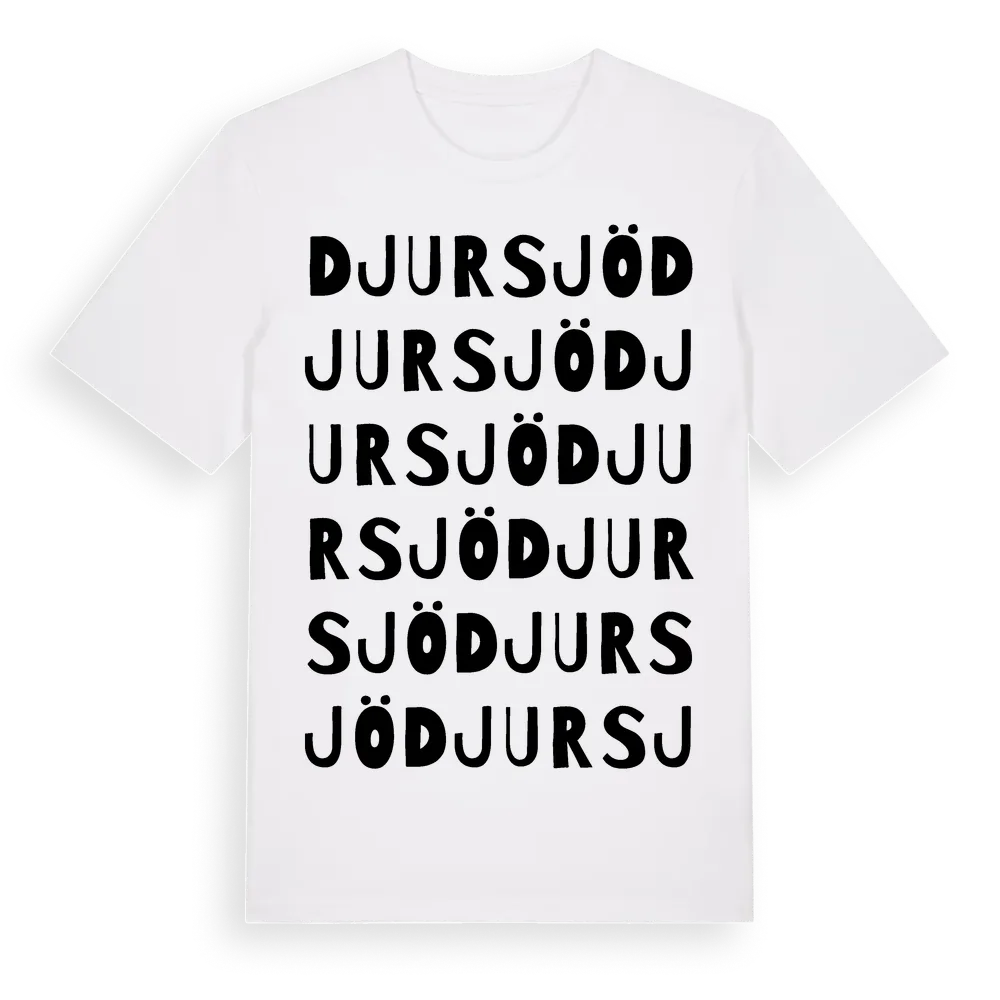 Djursjö ordlek t-shirt är inspirerad av Djursjö i Västerbottens län, Sverige. Tröjan är designad för dig som har en speciell koppling till platsen – oavsett om du bor här, har rötterna här eller bara älskar Djursjö.