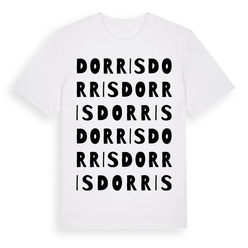 Dorris ordlek t-shirt är inspirerad av byn Dorris i Västerbottens län, Sverige. Tröjan är designad för dig som har en speciell koppling till platsen – oavsett om du bor här, har rötterna här eller bara älskar Dorris.