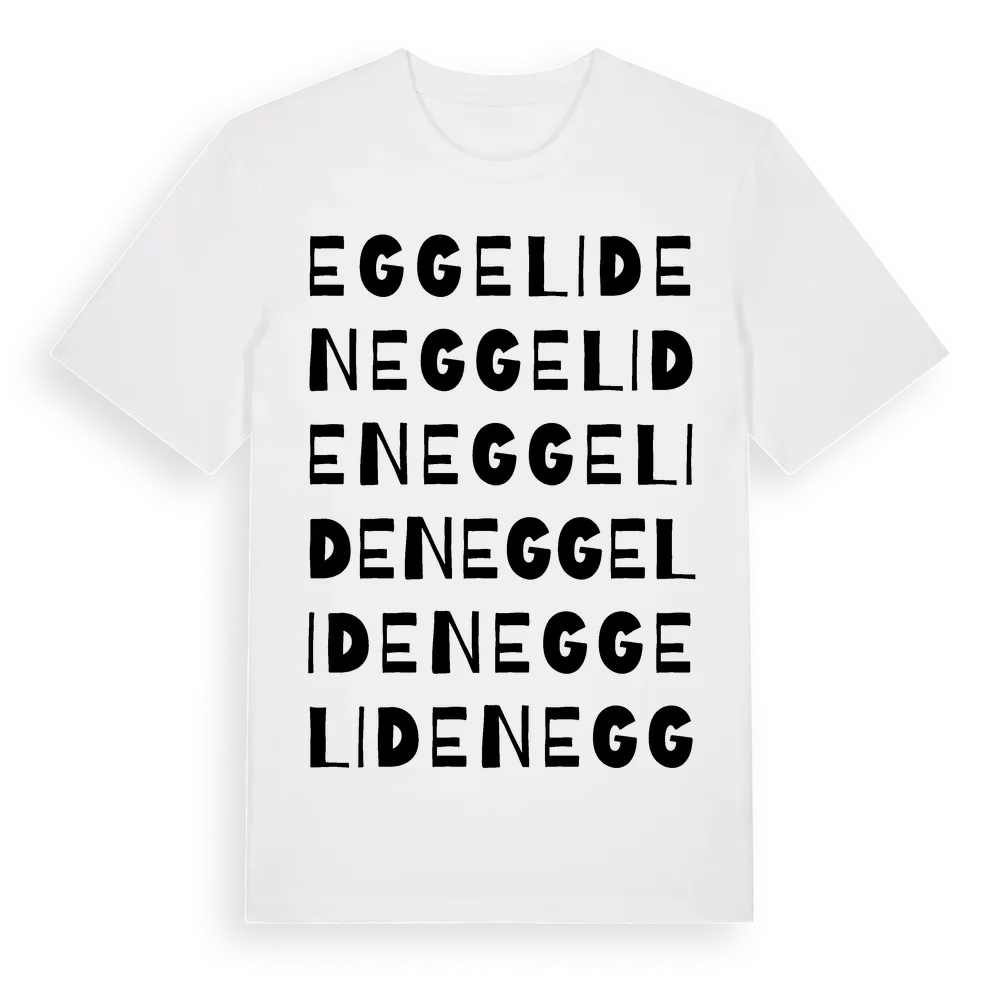 En ordlek byggd på Eggelidens namn. Subtilt och klurig – ett motiv som bara de som verkligen känner platsen fullt ut förstår. Premium bomull, unisex – från Eggeliden i Västerbottens län.