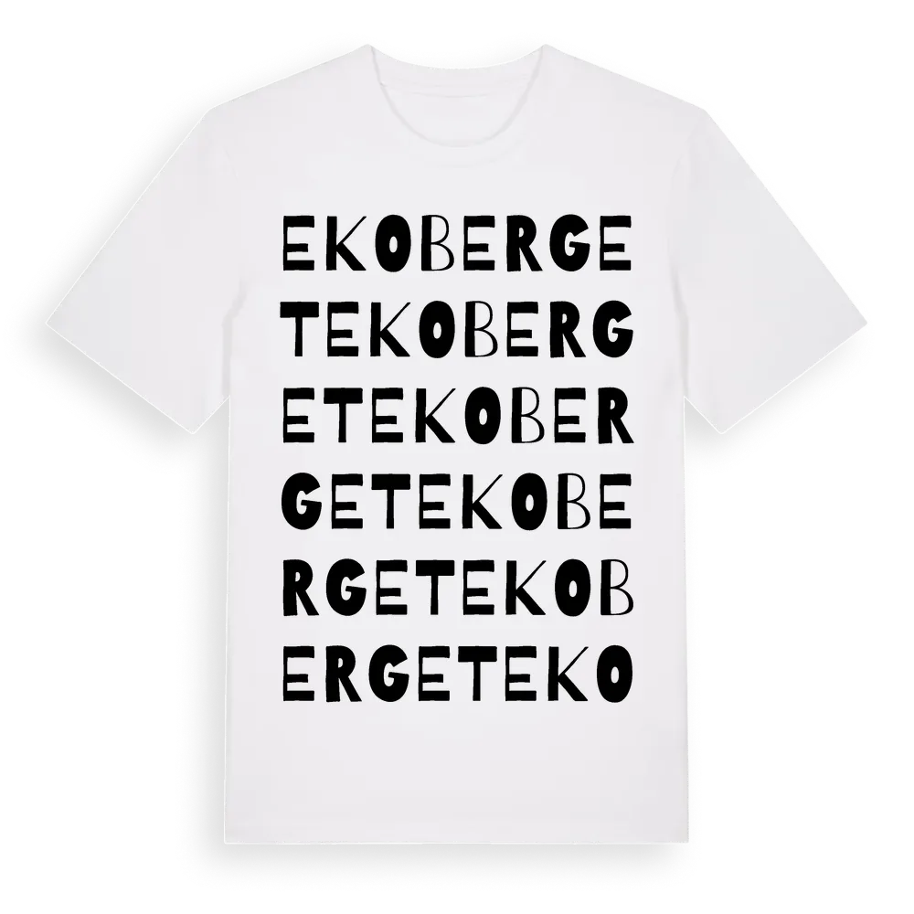 Ekoberget ordlek t-shirt är inspirerad av Ekoberget i Västerbottens län, Sverige. Tröjan är designad för dig som har en speciell koppling till platsen – oavsett om du bor här, har rötterna här eller bara älskar Ekoberget.