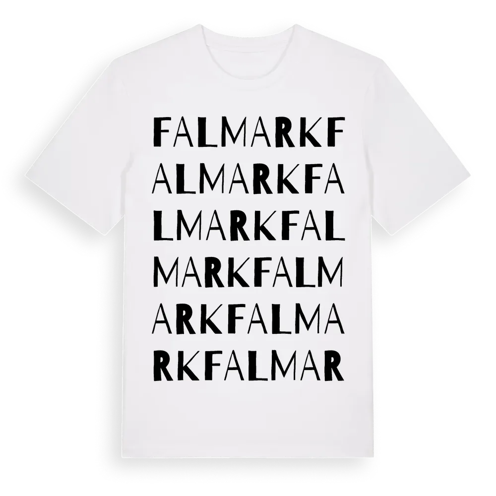 Falmark ordlek t-shirt är inspirerad av Falmark i Västerbottens län, Sverige. Tröjan är designad för dig som har en speciell koppling till platsen – oavsett om du bor här, har rötterna här eller bara älskar Falmark.