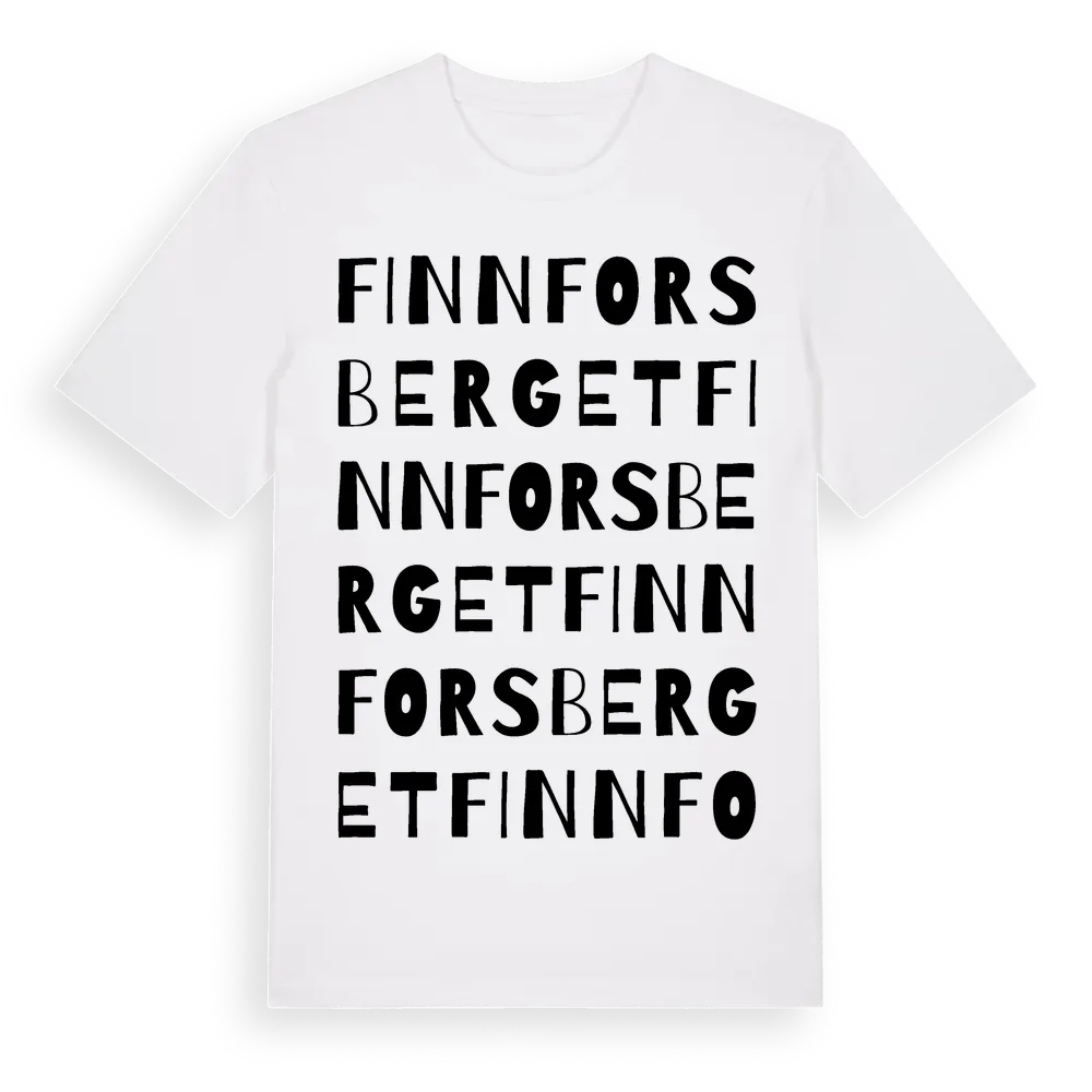 Finnforsberget ordlek t-shirt är inspirerad av Finnforsberget i Västerbottens län, Sverige. Tröjan är designad för dig som har en speciell koppling till platsen – oavsett om du bor här, har rötterna här eller bara älskar Finnforsberget.