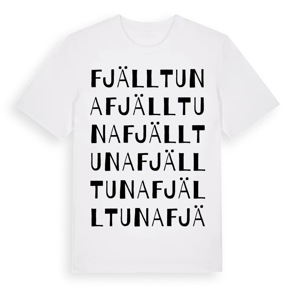 Fjälltuna ordlek t-shirt är inspirerad av byn Fjälltuna i Västerbottens län, Sverige. Tröjan är designad för dig som har en speciell koppling till platsen – oavsett om du bor här, har rötterna här eller bara älskar Fjälltuna.