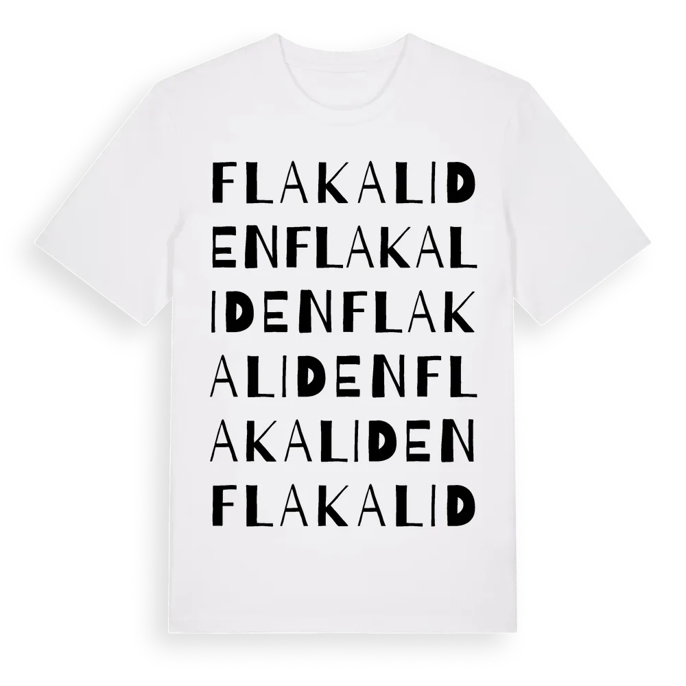 En ordlek byggd på Flakalidens namn. Subtilt och klurig – ett motiv som bara de som verkligen känner platsen fullt ut förstår. Premium bomull, unisex – från Flakaliden i Västerbottens län.
